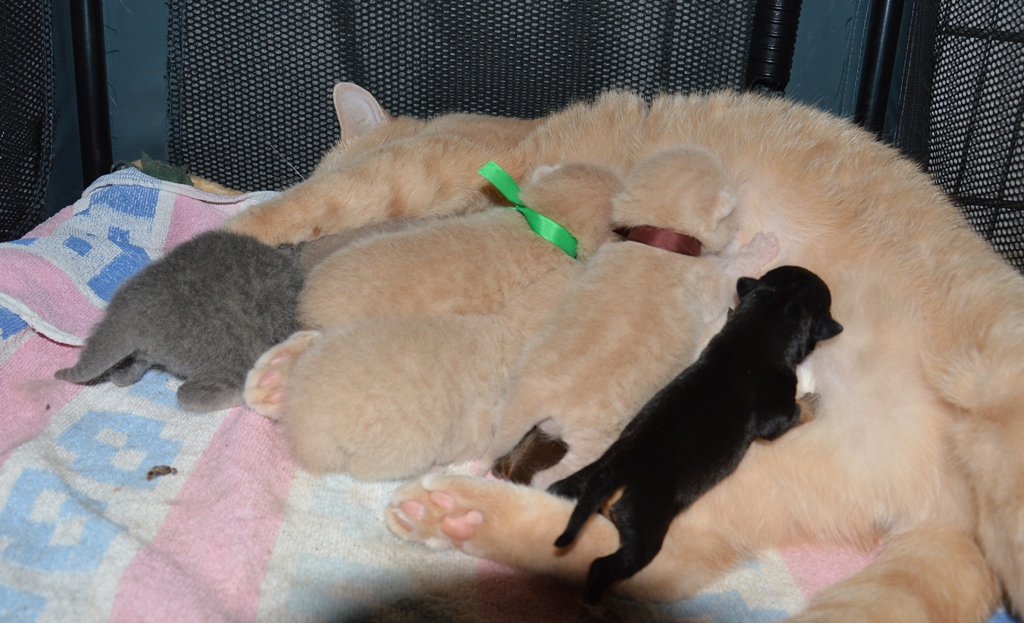 Casie maminkou - vrh H (zde pomáhla krmit štěňátka, když jejich maminka byla nemocná), vrh J - 2015