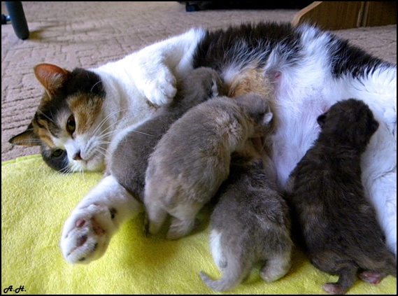 narodila koťátka. Svou majitelku opravdu velmi stresovala