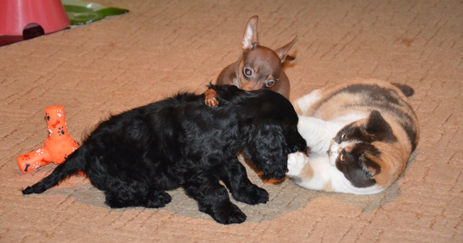Soubežné vrhy mi poskytly bezva podívané...:) výborné vztahy odlišných ras a druhů. Bude mi to chybět..... Kokřička Leontýnka, krysařík Tifi, a Kleopatra