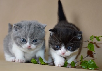 kocourkovi. Modrá bikolorka Charlotta byla světelejší než tato koťátka.