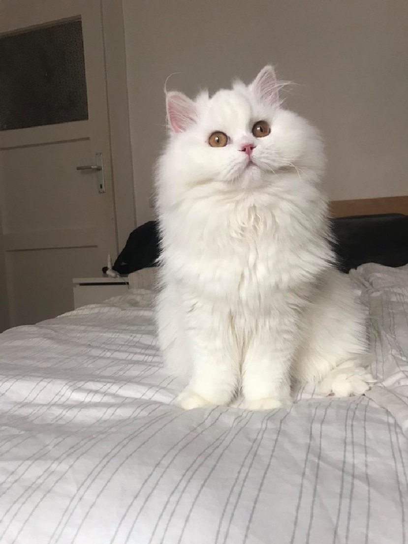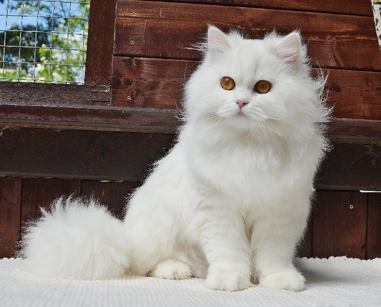 Mým snem již dlouho bylo mít sněhobílou holku, sice v krátkosrsté variantě, ale když jsem zahlédla Elišku na inzerci již jako více jak půlroční kotě nedalo mi to spát. Sledovala jsem ji od narození a prostě mne učarovala. A tak se tato sněhobílá kráska začala zabydlovat u nás, zvykat si na mé stádo psů :) a dění u nás. Eliška je velmi skromná a nekonfliktní kočka, která má ráda pohlazení, je výbornou matkou, a svá , nejen svá kotata miluje. Její bílé odchovy jsou pro mne zatím velkým překvapením a to v barvě očí, která pro mne není prioritou, ale nebudu lhát je to zajímavé a krásné .Jsem moc ráda,že náhoda tomu chtěla a stala se součástí mojí rodiny.